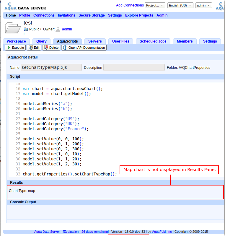 Actual Result : Map Chart is not generated and only message "Chart Type: map" is displayed on executing the script.