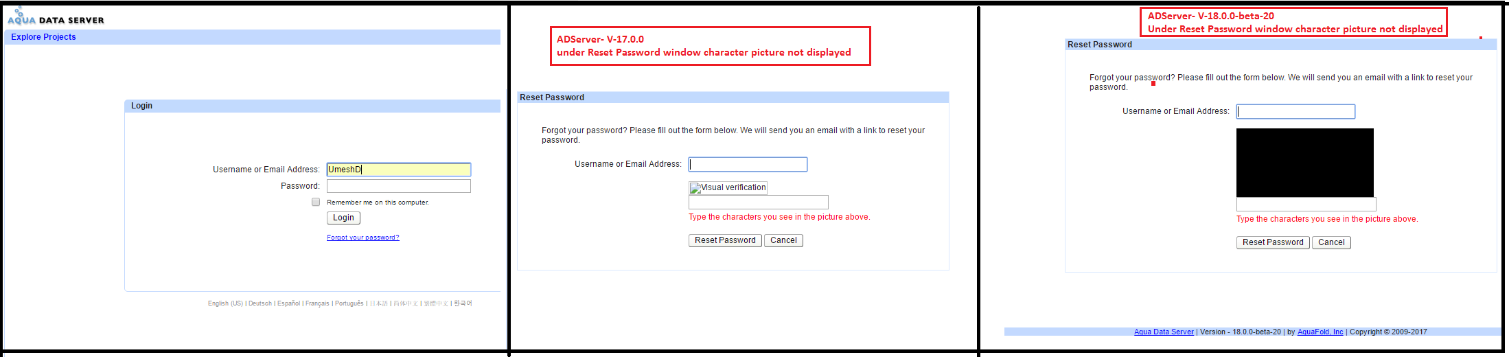 In ADS V-15 and ADS V-16 Verification character picture are displayed under Reset window. Refer attached screenshot 'Character_pic_displayed.png'