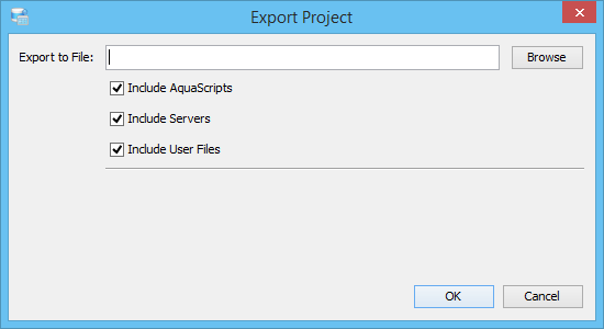 When you use Aqua Data Studio to export the project, make sure that you include Aquascript, Servers and User Files folders in this menu. It looks like one of those is missing from your project. Aqua Data Server is expecting all three.