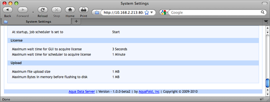 Aqua Data Server allows timeouts for the scripts or other actions put “on hold” due to the absence of the thread license. If the “on hold” time exceeds the timeout threshold the scheduled script will be removed from the schedule and will not start (even if the license becomes available). Information about jobs aborted due to the timeout will be logged in the job's history stating that maximum execution threads exceeded.