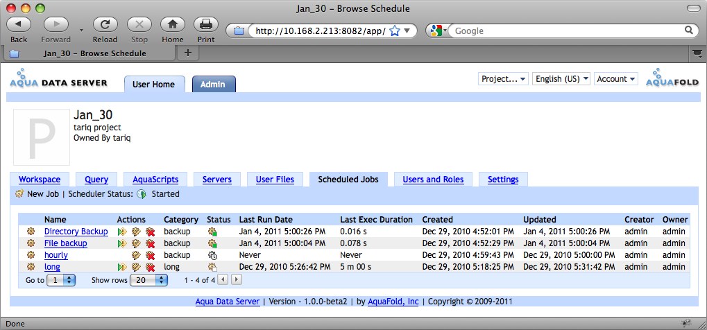 Running Tab: Display all jobs that are currently executing. The scheduler engine must be started in order to display the running jobs.