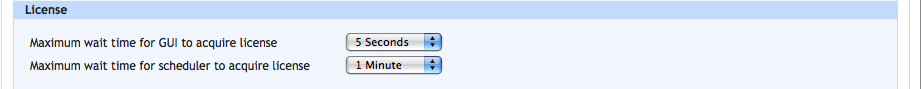 Timeout when license acquired for a GUI action (when a user uses Aqua Data Server web interface). Set as 5 seconds, 7 seconds, 10 seconds, 30 seconds or 60 seconds. If a license is not acquired within the specified amount of time a license exceeded warning is displayed to the user.