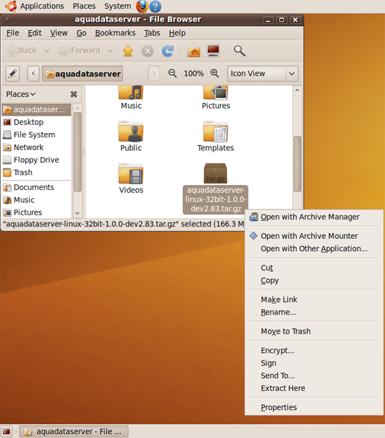 tar -xvzf aquadataserver-linux-64bit-13.0.0.tar.gz <press enter>
