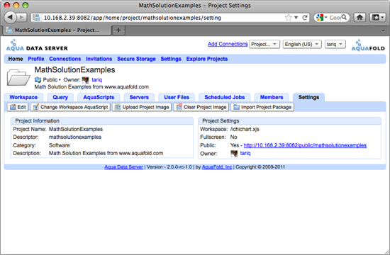 Aqua Data Server projects can be set for public access where visitors can view the project workspace and run AquaScripts accessible through the GUI elements on the workspace. An example of such a project is the “MAC Finder” project built as an illustration of Aqua Data Server capabilities.