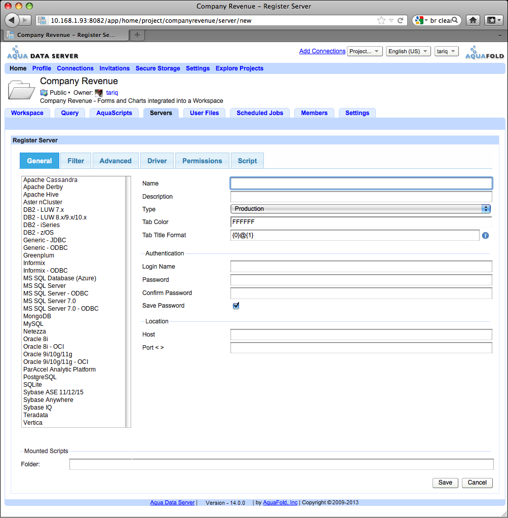 As you are developing your project solutions, you may find the need to perform database (DB) access in your AquaScripts. The Servers tab lets you register and manage DB servers and then access them within your AquaScripts. On this page:
