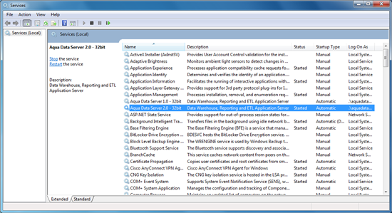 Go to Control Panel > Administrative Tools > Services, find the Aqua Data Server v18.0 service and start it. ( NOTE: The original Aqua Data Server v17.0 service will still appear in the list, make sure you start only Aqua Data Server v18.0)