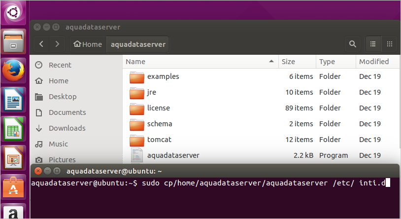 To make sure Aqua Data Server automatically starts every time the operating system is rebooted, copy the aquadataserver bash file to /etc/init.d/