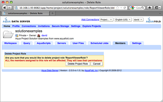 Each time a new project is created Aqua Data Server automatically creates 3 project roles within the newly created project. These are "Administrator", "Developer" and "User".