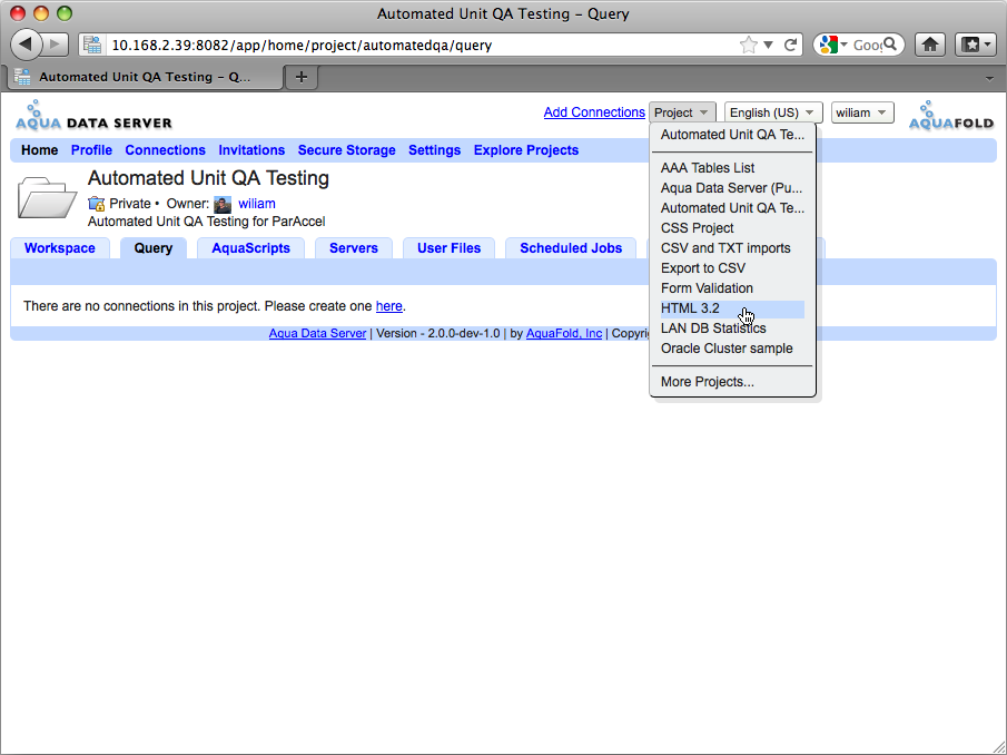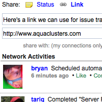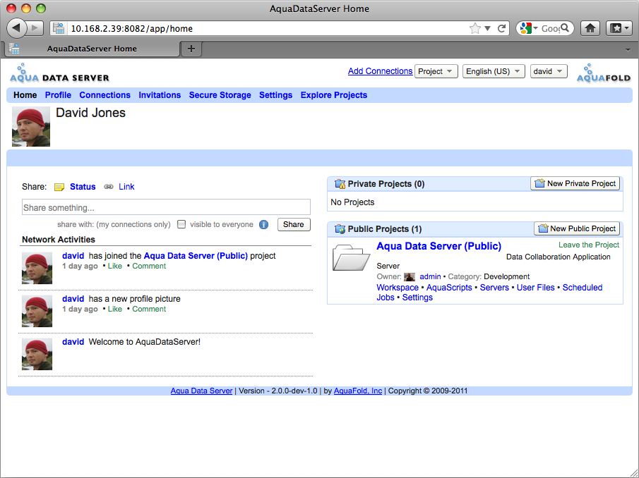 The user Home Page has been enhanced to include Network Activities, a continuously updated list of what other users are up to within Aqua Data Server. Users can respond to what they see in the Network Activity by commenting on a post, sharing a URL or merely "Liking" what is being posted by others. Each user's Projects list is now divided into Private Projects and Public Projects, so that it's easier find the project they're looking for and navigate directly into the specific area of a project they want to see.
