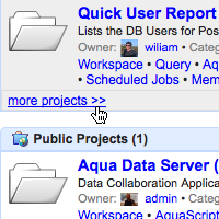If there are more than 10 projects within the Public or Private Projects lists, clicking "More projects" reveals the additional projects.