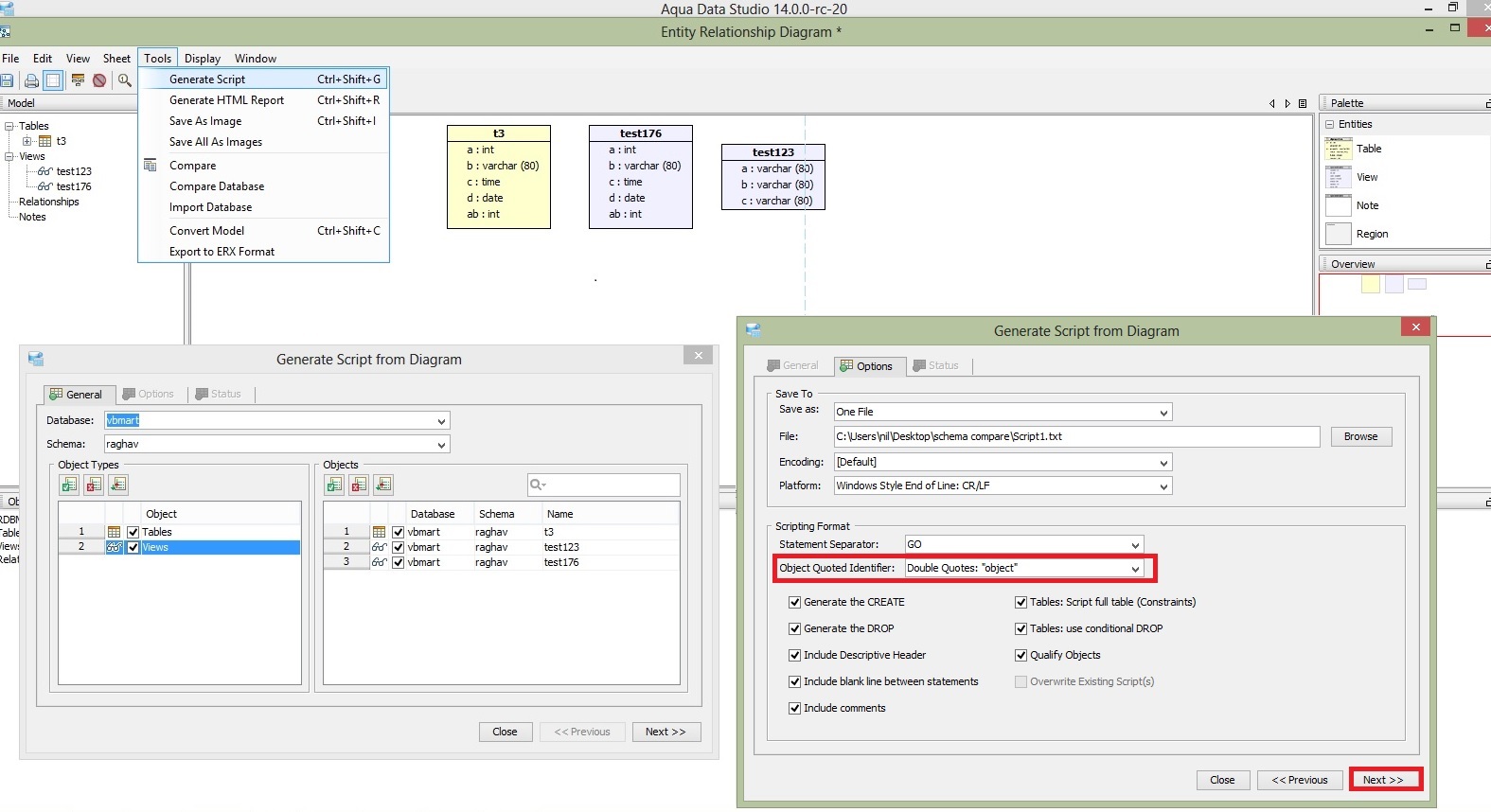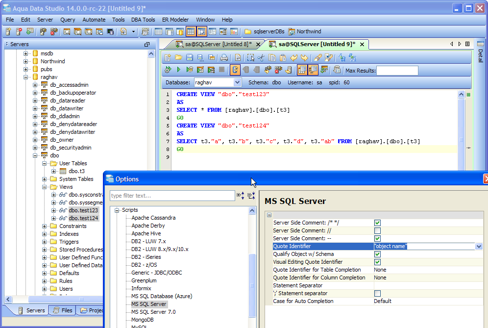 Make sure you check your File > Options > Scripts > (db typee/vendor) > Quote Identifier settings
