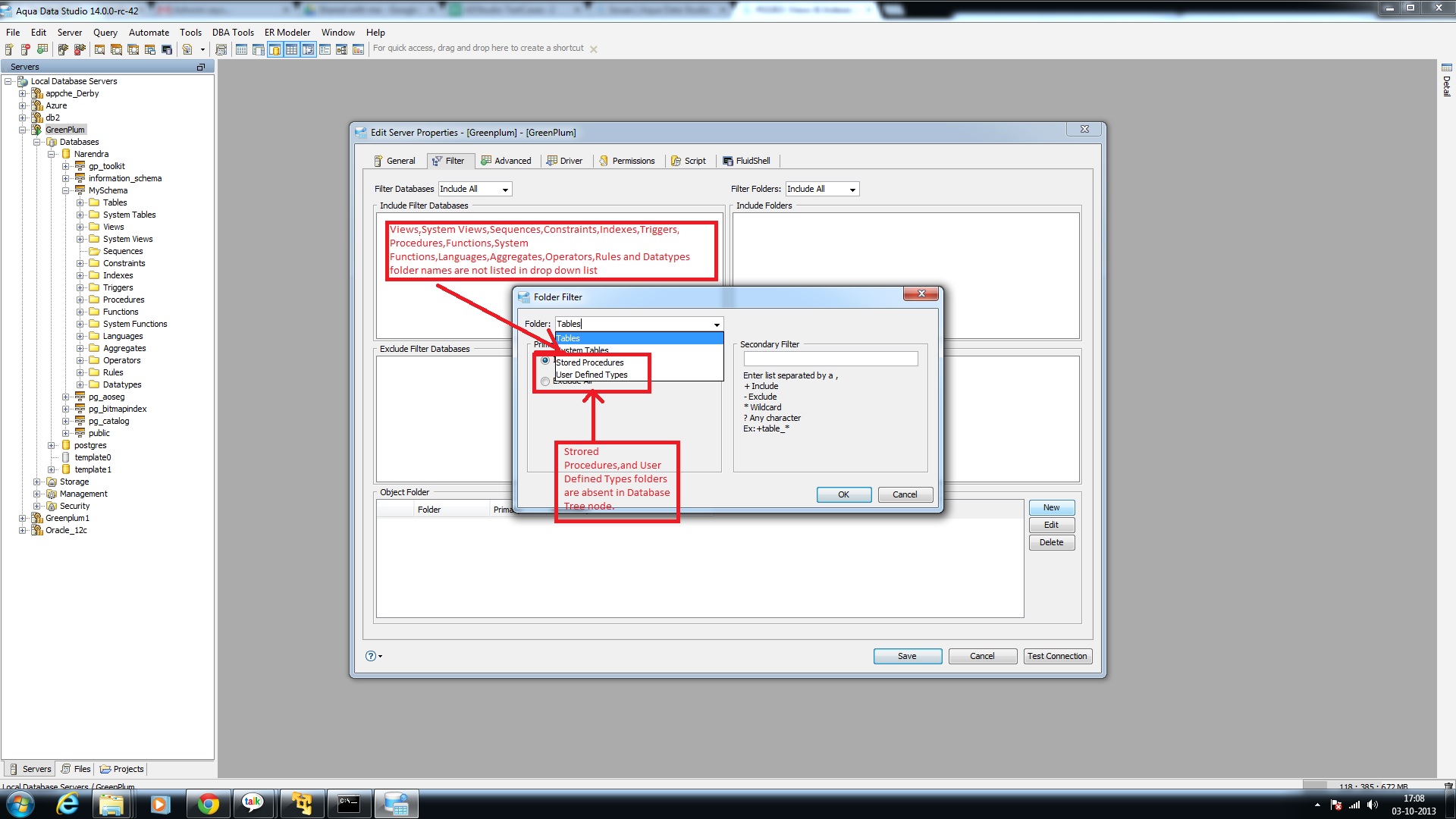 2.In that, click on Folder list box->In a list "Table","System Tables","Stored Procedures" & "User defined Type" object folders are displayed
