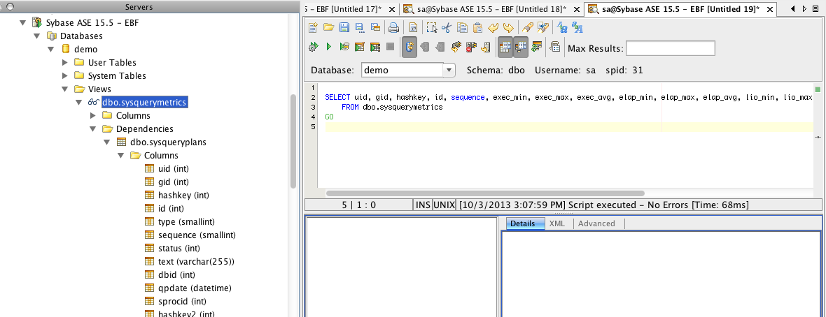 1. Connect to Sybase ASE 15.5 database and open a query window
