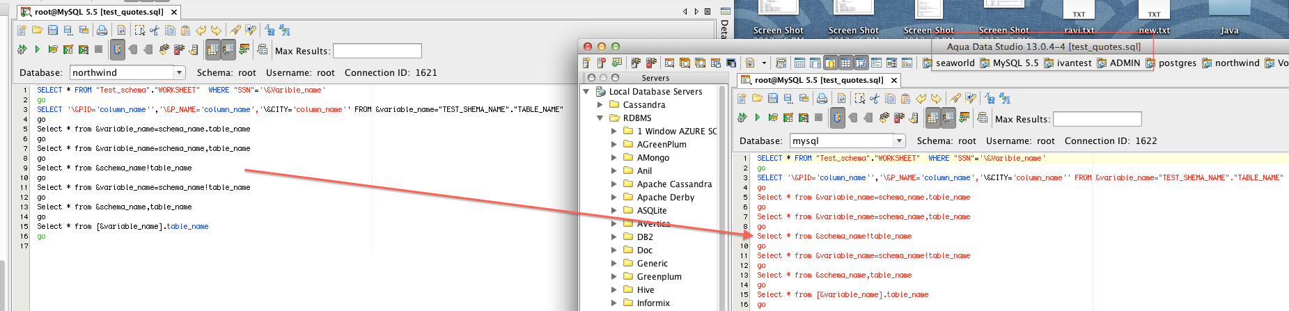 SELECT * FROM "Test_schema"."WORKSHEET" WHERE "SSN"='\&Varible_name'