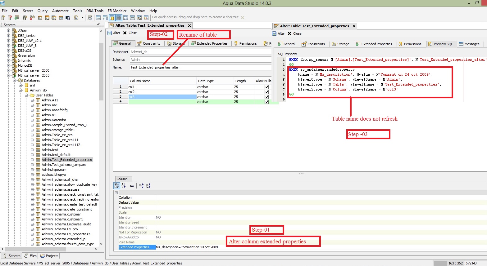 Note to QA: Test SQL server 2005 "Database" Extended Properties as well. This was tested and works fine in v14, but there were a couple of things which was missed during porting to v15