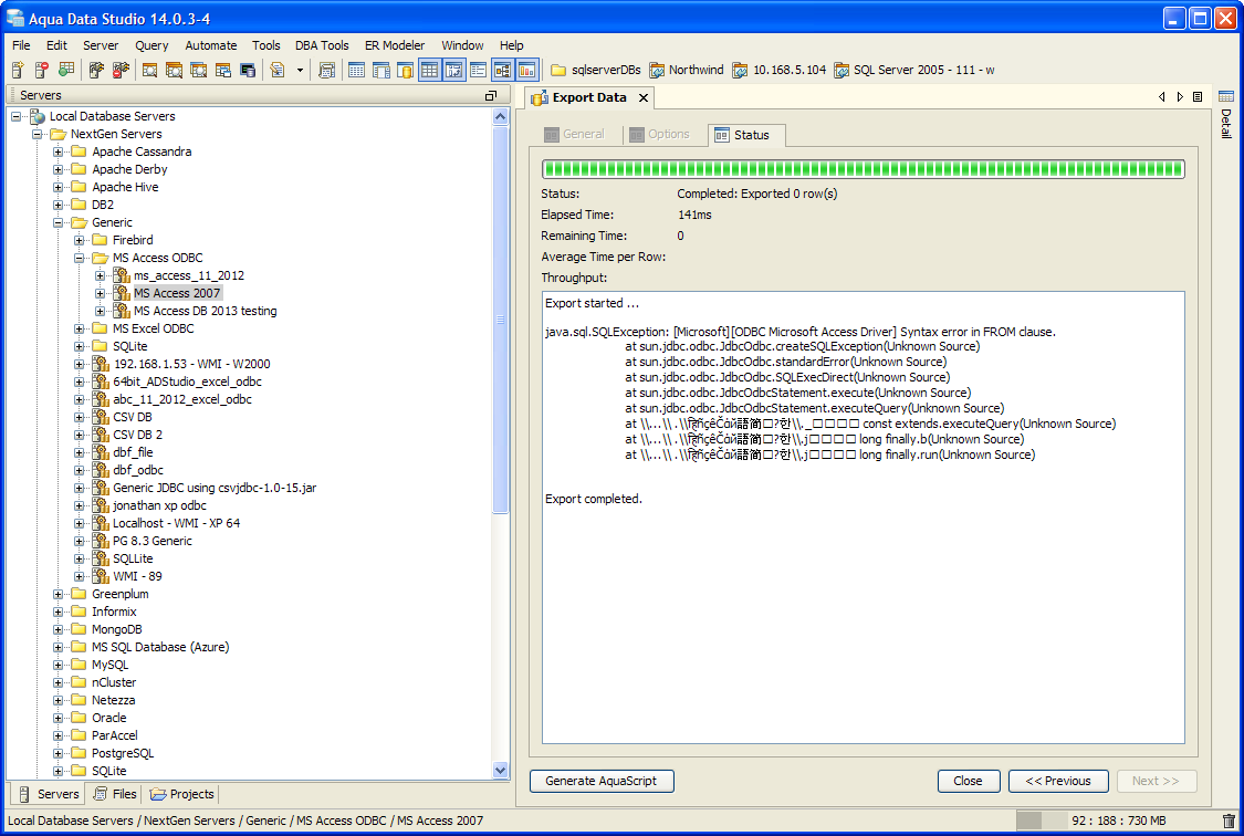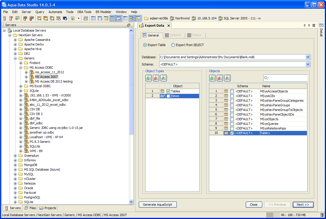 1. right click on a MS Access Generic ODBC connection and choose Tools > Export Tool