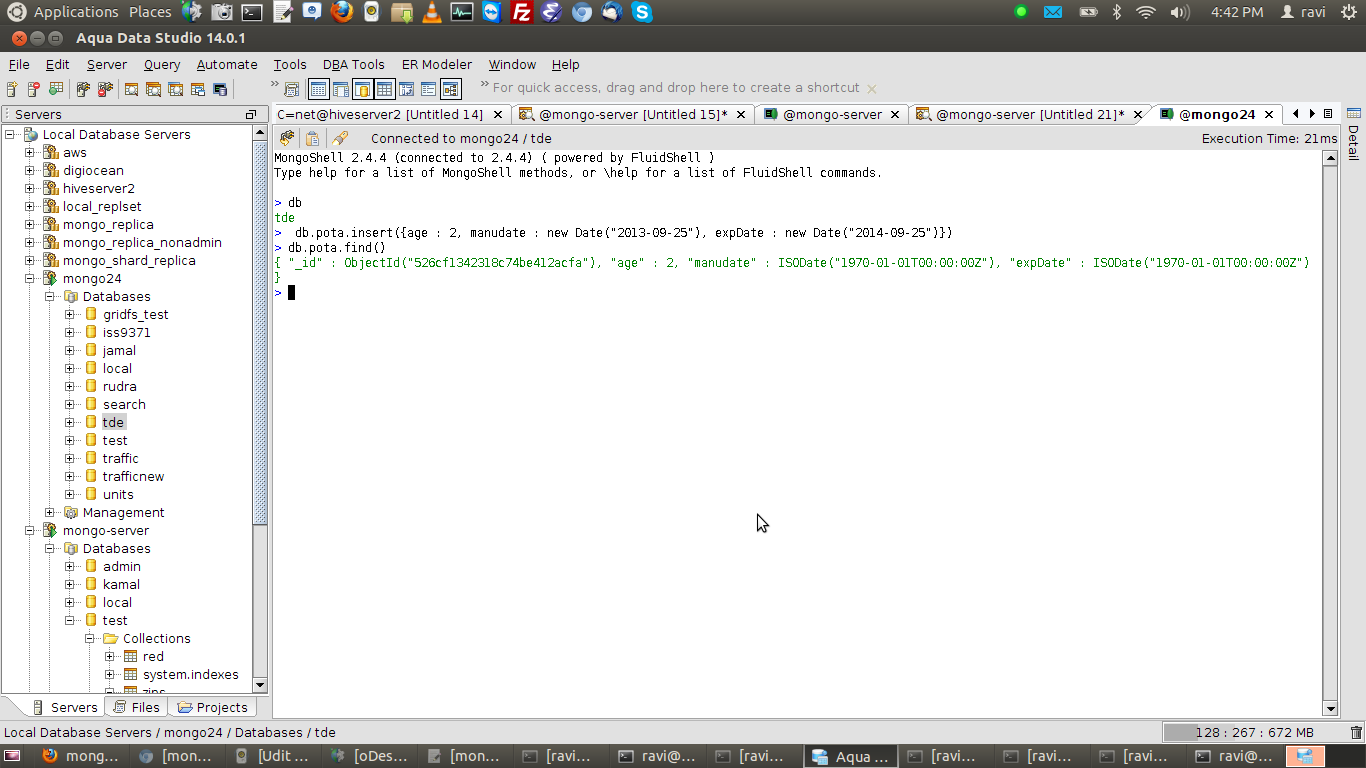 - MongoShell.png - A date string of "YYYY-MM-DD" format can't be parsed in ADS MongoShell and 2.2 native mongo shell.