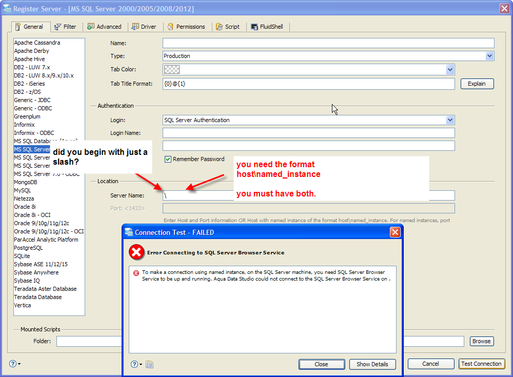 We don't in accept this formatting in server registrations. We should detect instances when users enter host name this way.