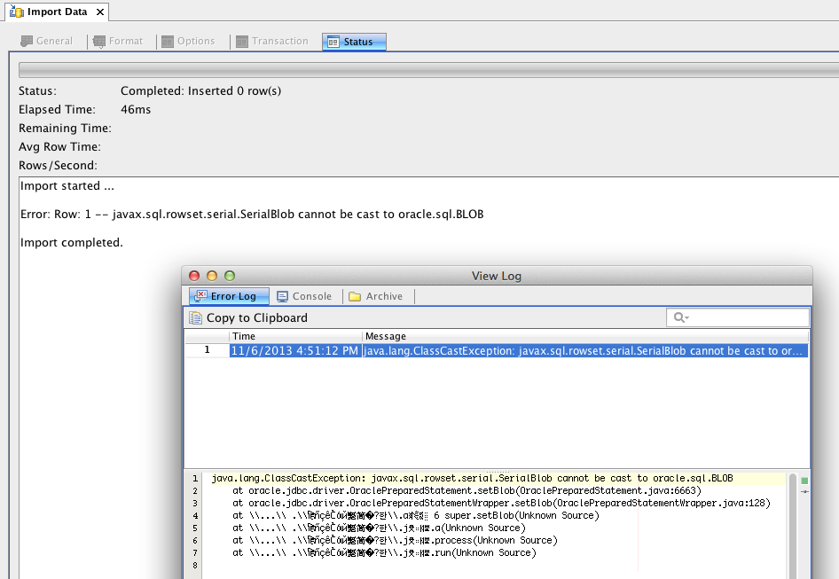 java.lang.ClassCastException: javax.sql.rowset.serial.SerialBlob cannot be cast to oracle.sql.BLOB
