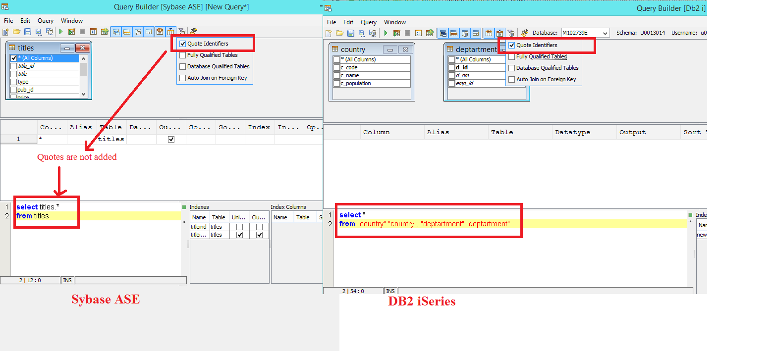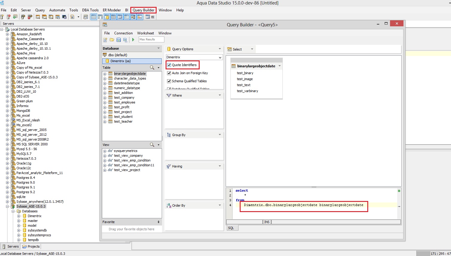 Issue #12218Usability issue with Query Builder "set quoted identifier" option in Sybase ASE, Informix and Generic |
