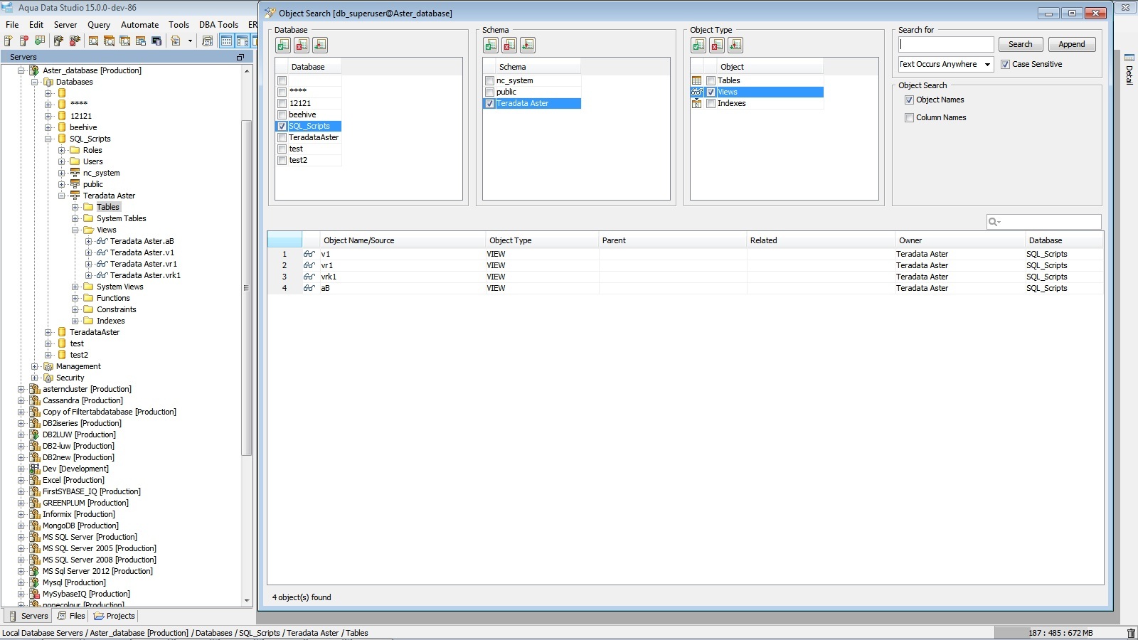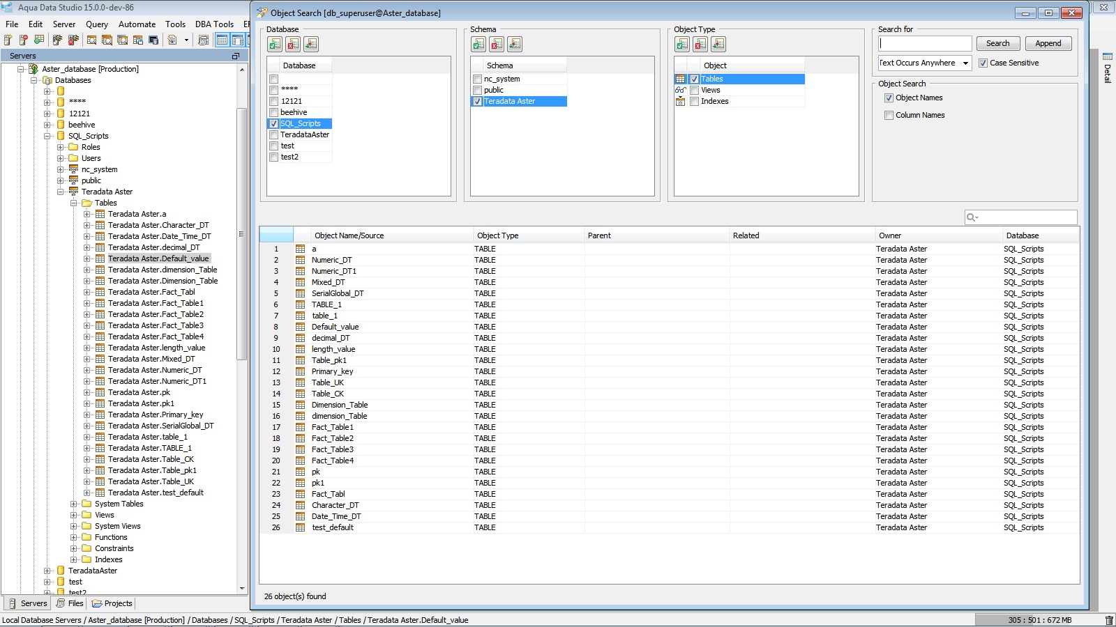 In result list of table/views/indexes get displayed but list does not display in alphabetical order