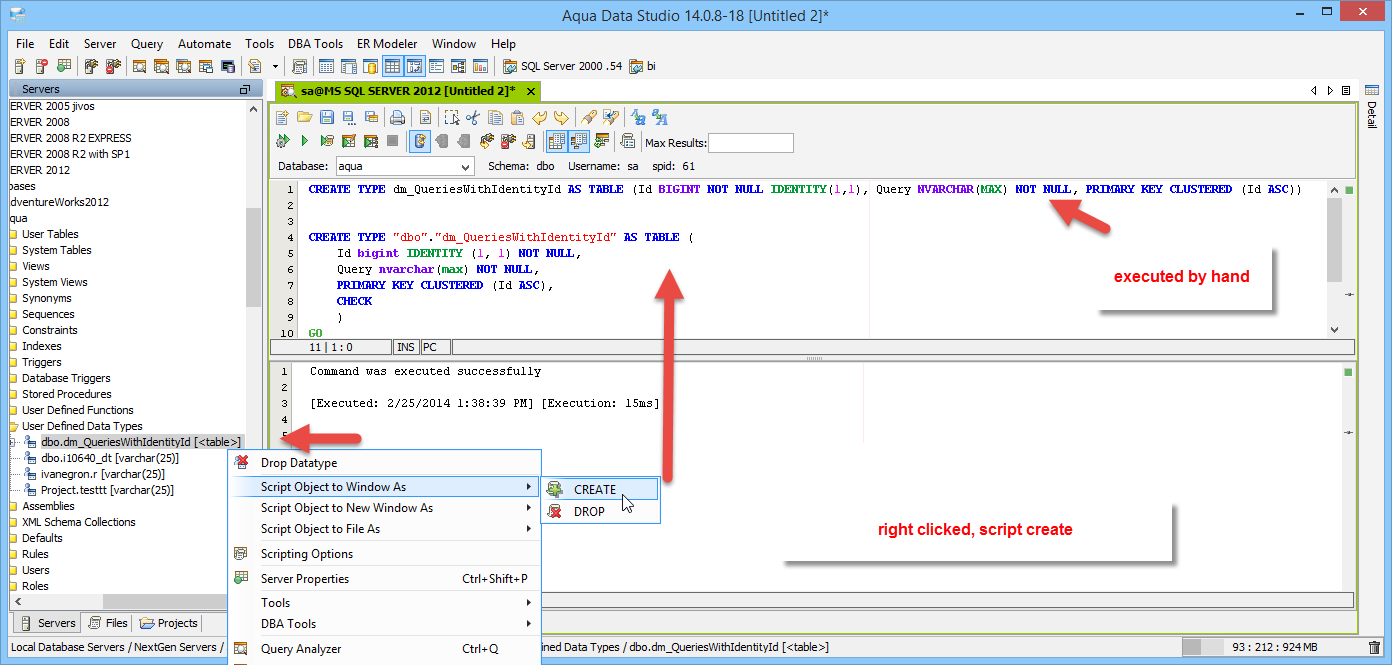 CREATE TYPE dm_QueriesWithIdentityId AS TABLE (Id BIGINT NOT NULL IDENTITY(1,1), Query NVARCHAR(MAX) NOT NULL, PRIMARY KEY CLUSTERED (Id ASC))