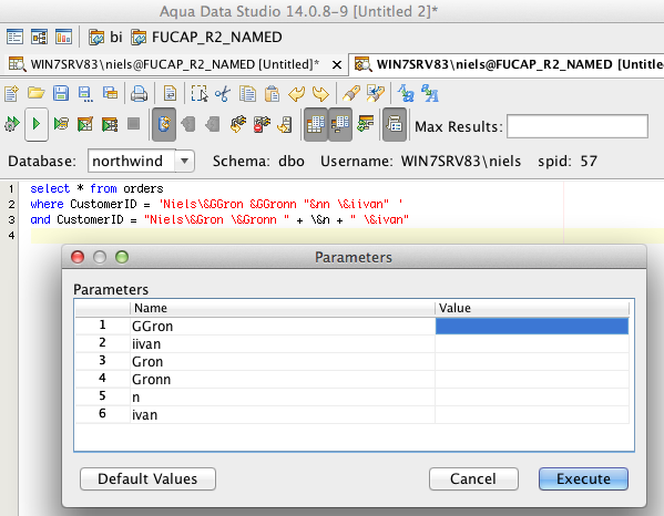 and CustomerID = "Niels\&Gron \&Gronn " + \&n + " \&ivan"
