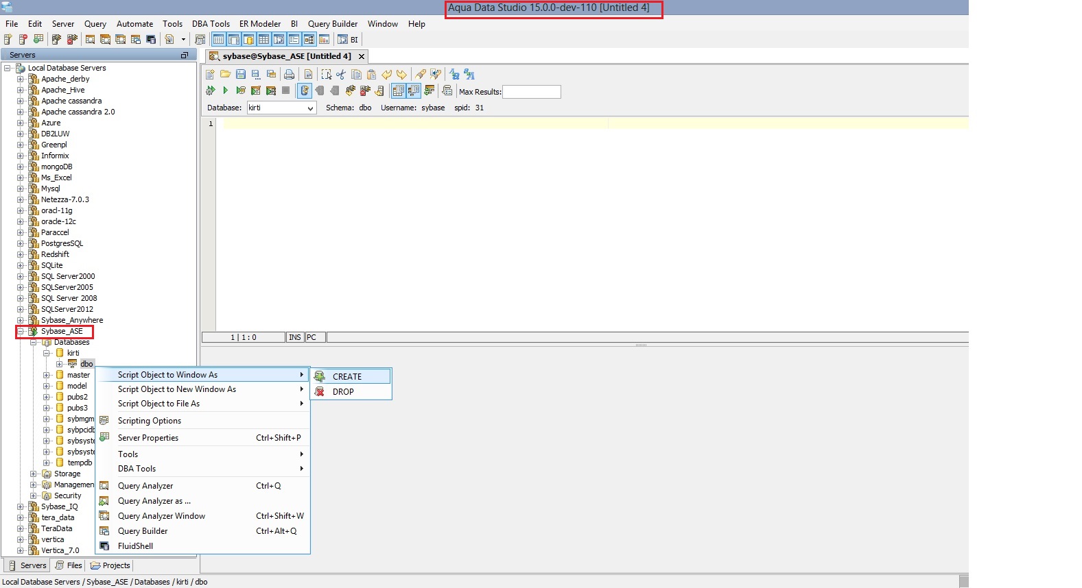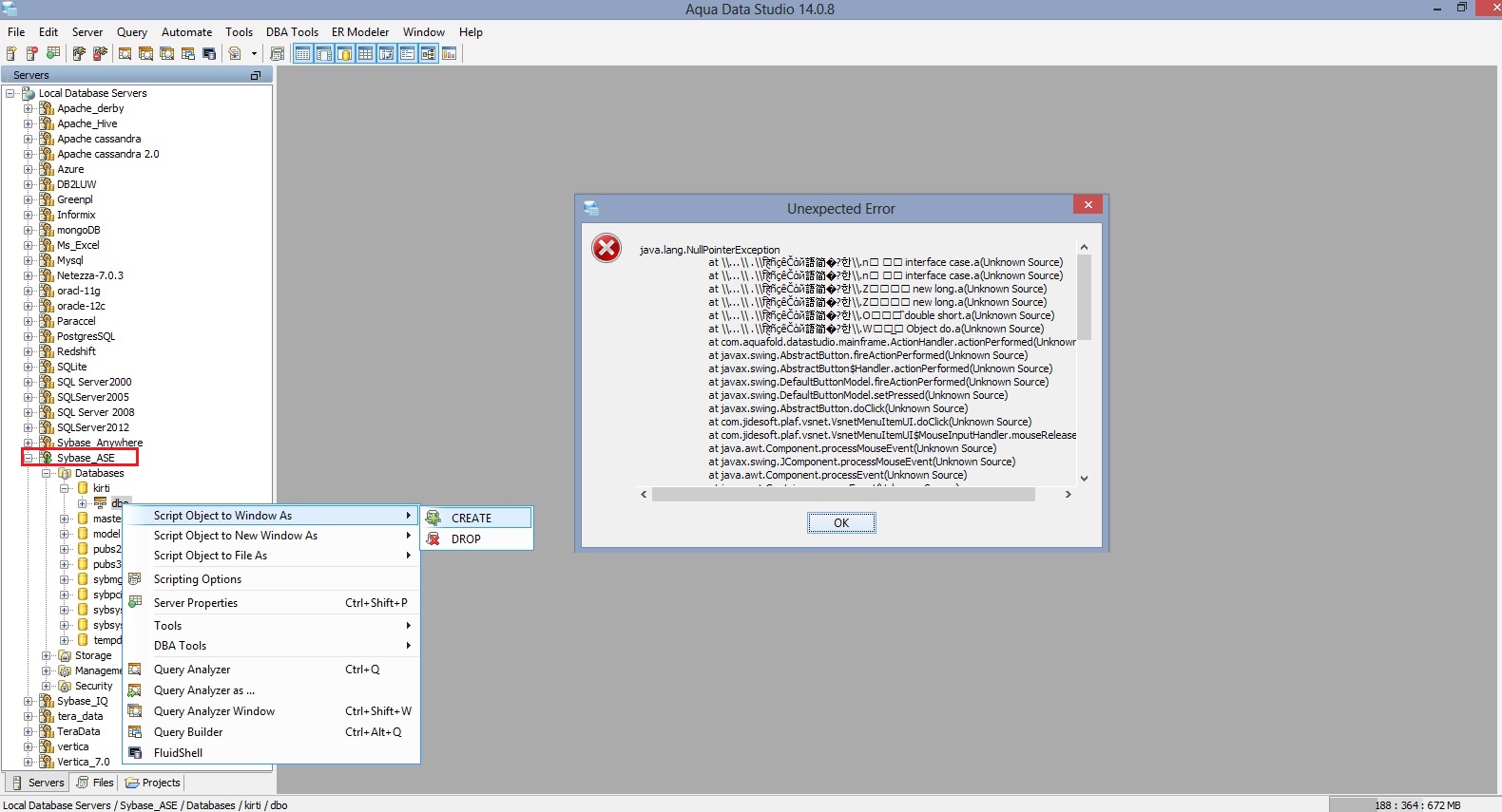 fixed npe. added node suppoert for sybase ase and ms sql server.