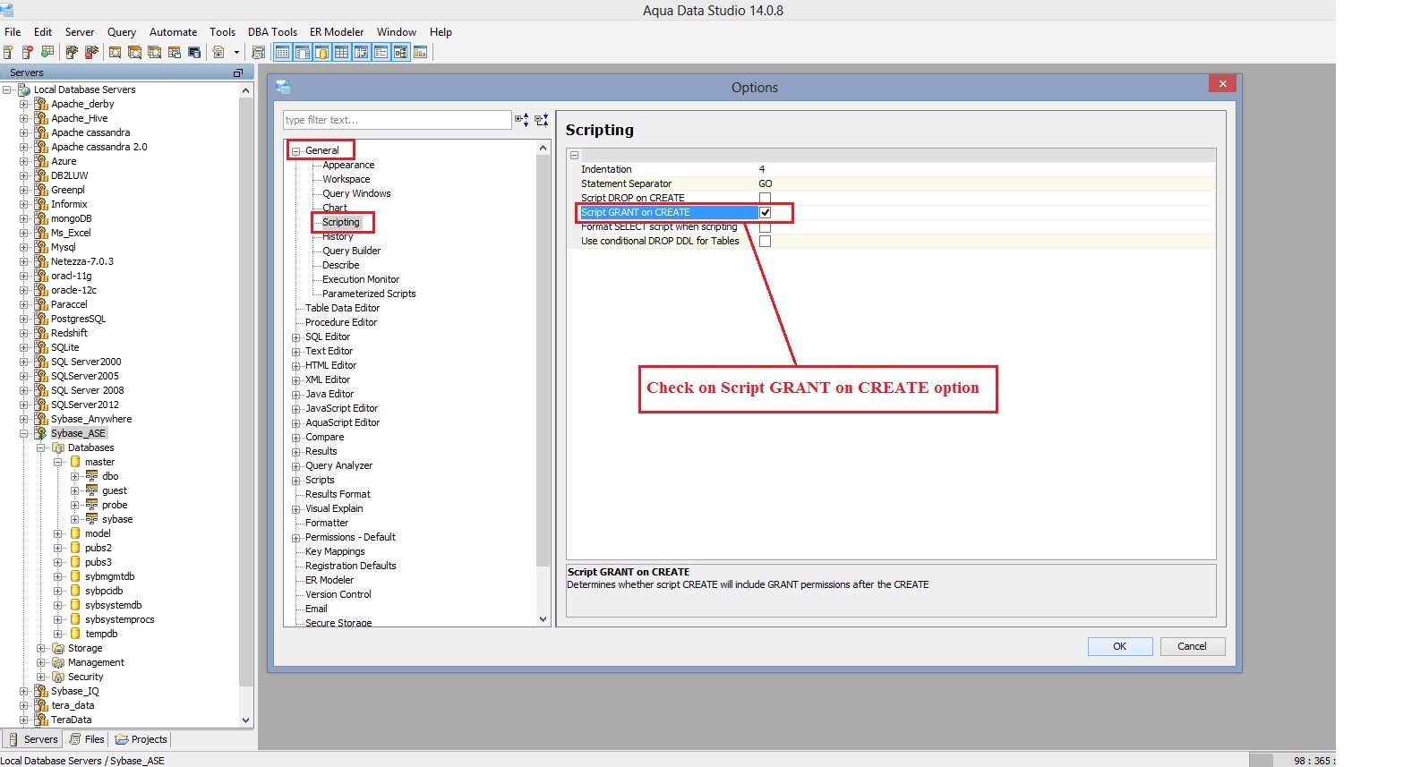 2. Go to File menu->Option-> select General option and expand it-> Select Scripting option-> Check on Script GRANT on CREATE option