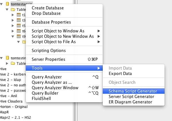 3. Open Help > View Log. Select a database, right Click and use Tools-> Schema Script Generator.