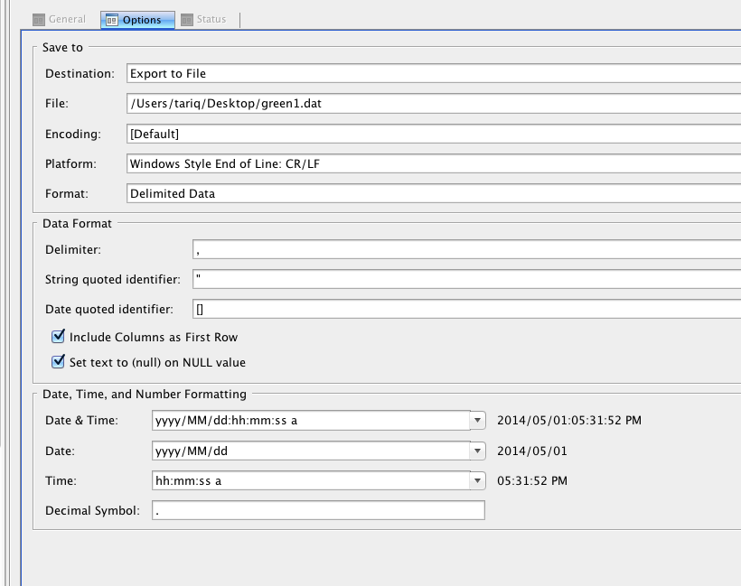 4. Now Export the table to a File and Format Delimited Data