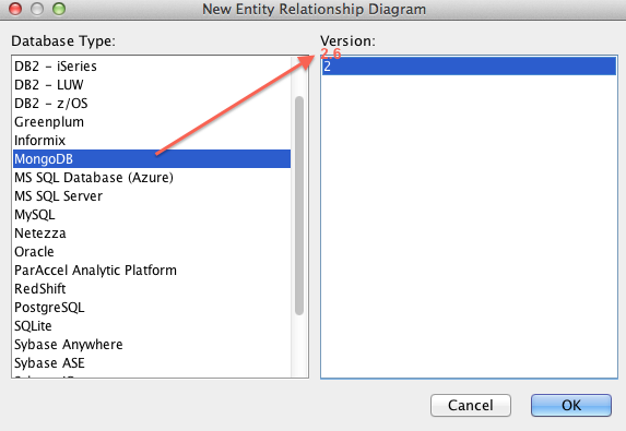 Add New -> ER Modeler -> MongoDB -> Version -> 2.6