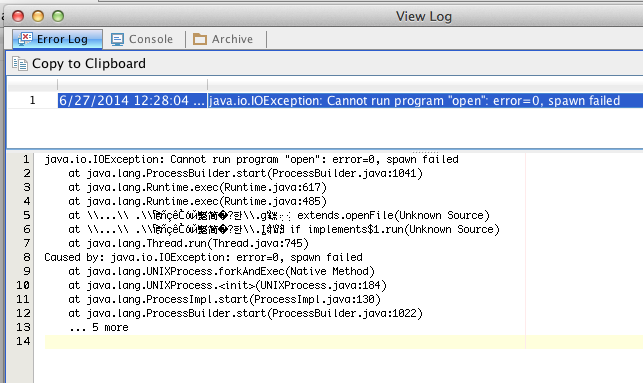 Ok, so it seems that the action works, but an exception is logged. This didn't occur in 14, but started occuring with the new Java 1.7.0_60.