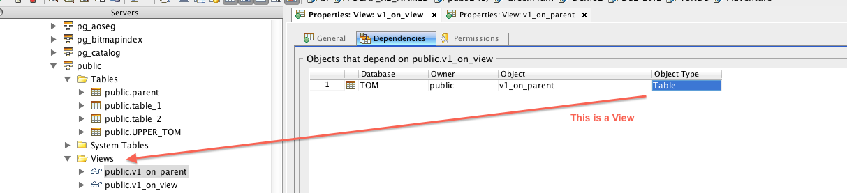 Issue #12392Greenplum: View Dependencies is incorrect when compared to ParAccel |