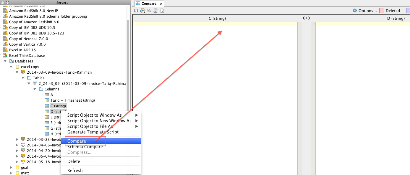 4. Select option Compare