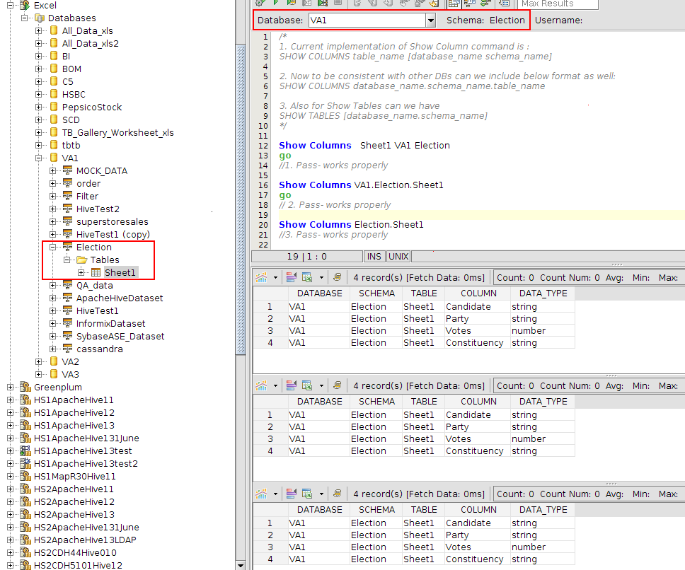 Added the following syntax for SHOW COLUMNS and SHOW TABLES commands: