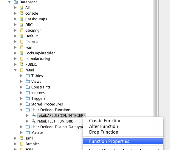 5. Select a function, right click and take the Function properties :: You get java.lang.Exception: Function not found
