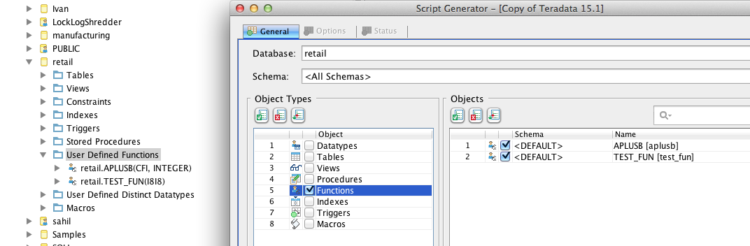 Teradata 15 : Schema Script Generator -> Functions gives NPE