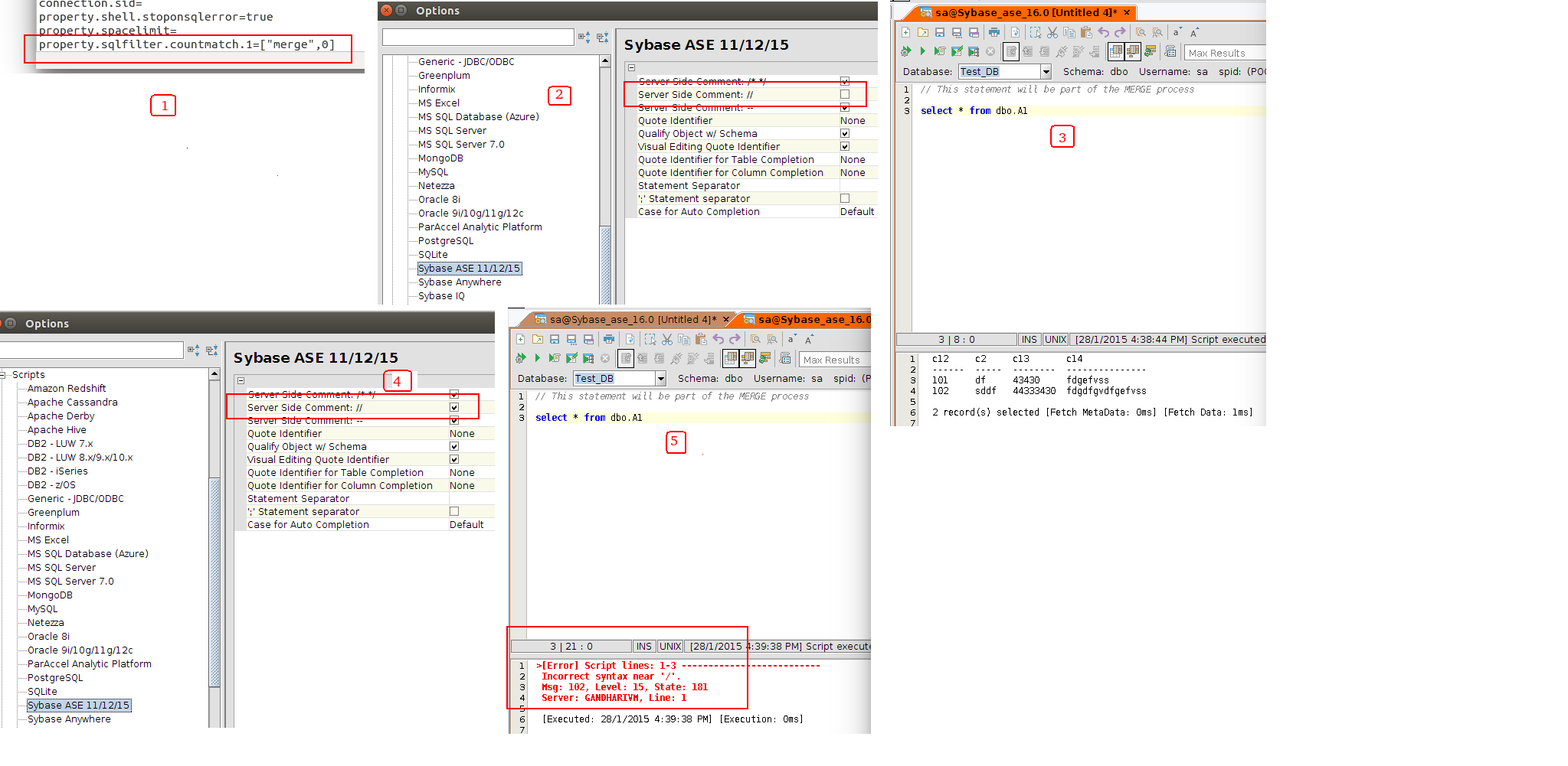 Customer wants to filter on the word "merge", but some users have server side comments on Sybase ASE like this :