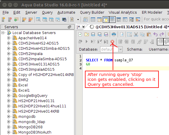 Activation of cancellation is for Cloudera only with Apache >=.14 drivers or Cloudera connection drivers >=2.5.15 for Impala and >=2.5.7 for Hiveserver2