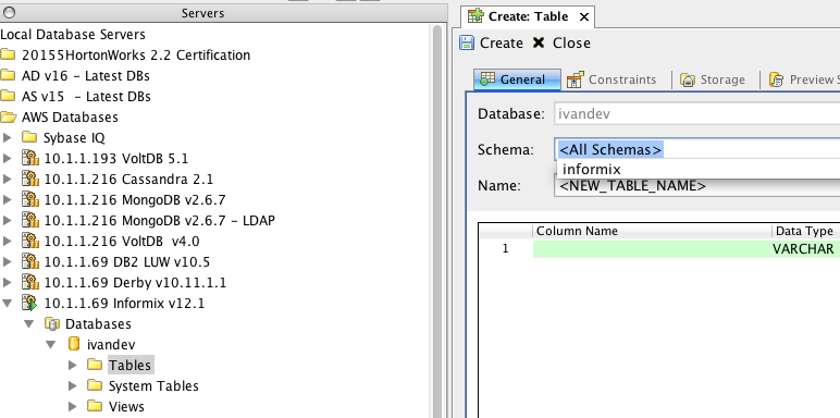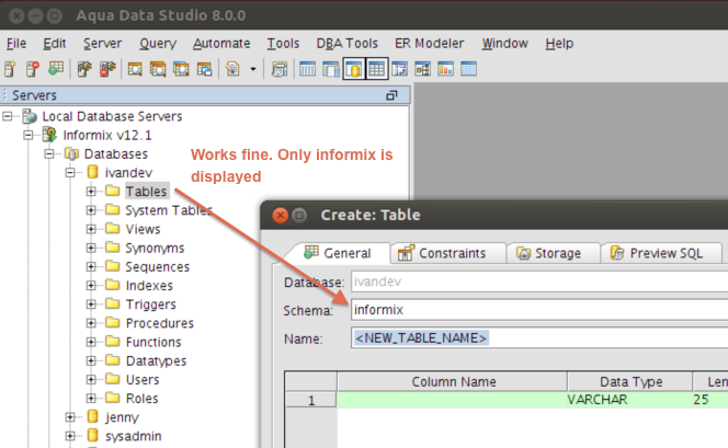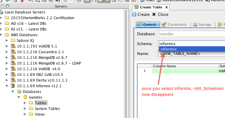 Informix Create Object GUI: <All_Schemas> gets displayed initially and disappears after we select a different schema