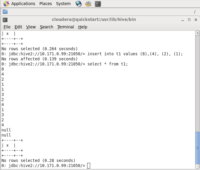 Beeline interface - Insert records into table, using insert command.