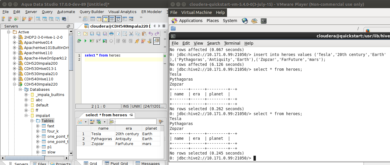 Memory: Max=4,433,379,328; Total=1,329,070,080; Free=986,494,304; CPUs=8Database: Cloudera CDH 5.4.0 - Impala 2.2.0