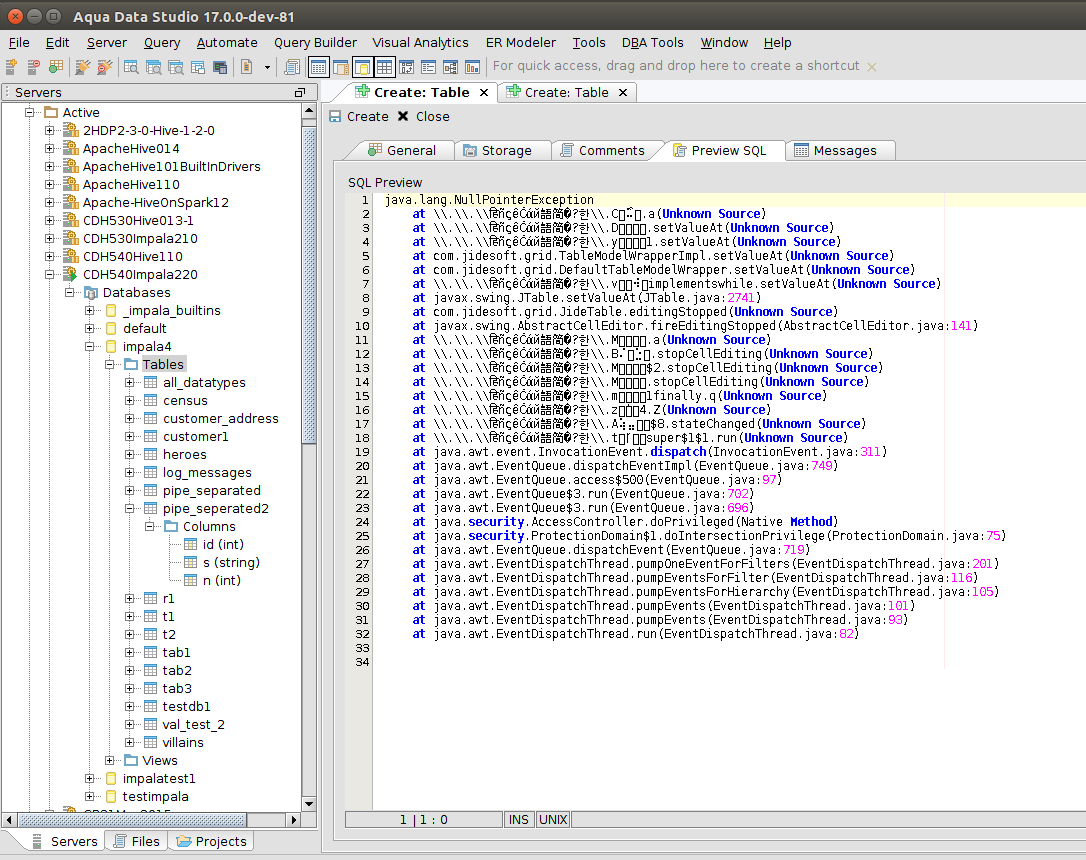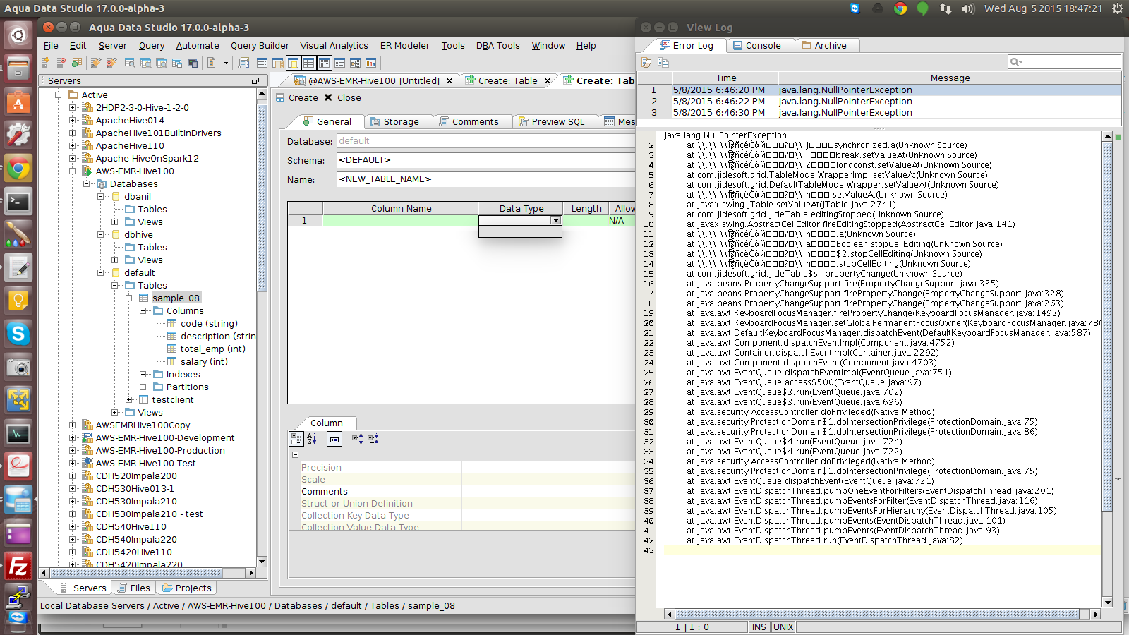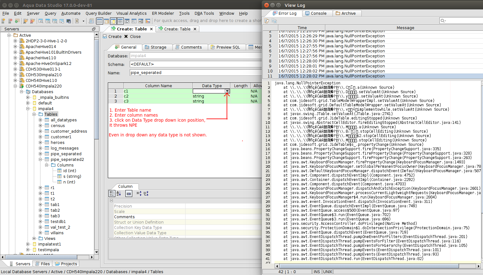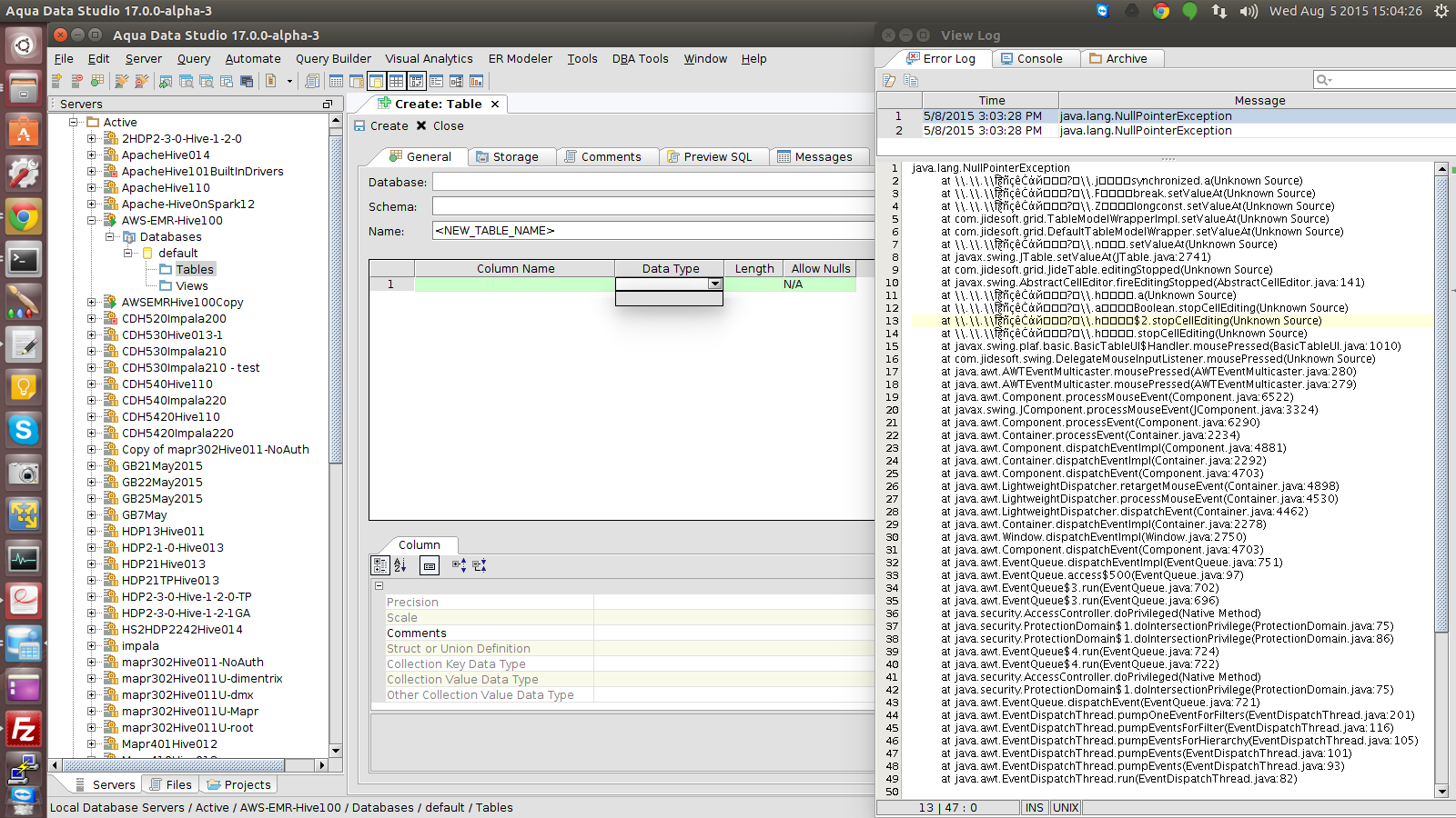 Keeping the connection idle for around 20 Minutes, and then opening Create Table window, click on drop down of Column Datatype, NPE thrown.