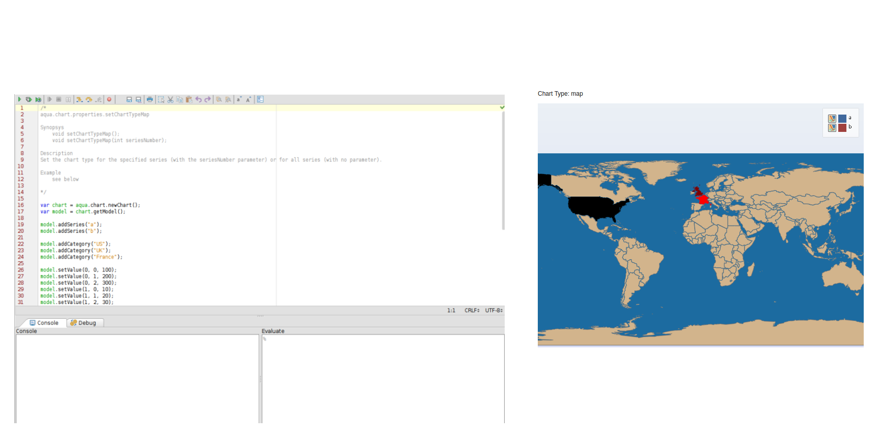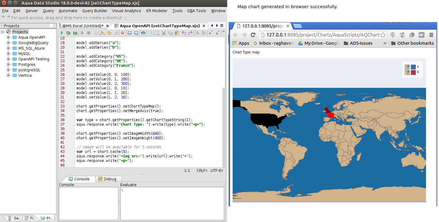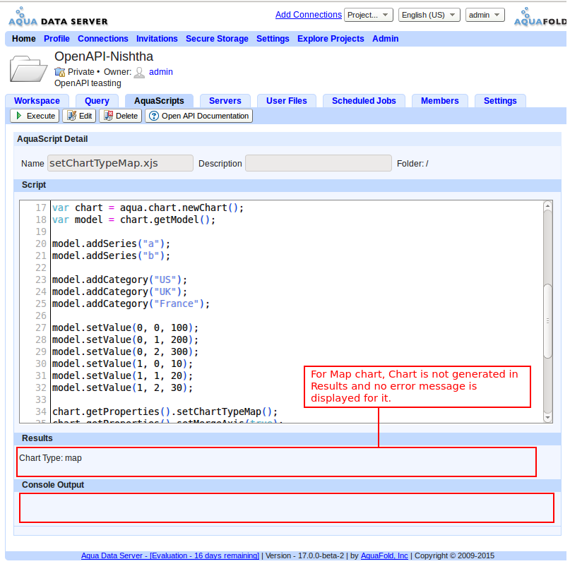 On Aqua Data Server,If we execute attached("setChartTypeMap.xjs") script Map chart is not generated and also no error message is displayed for it as mentioned here.