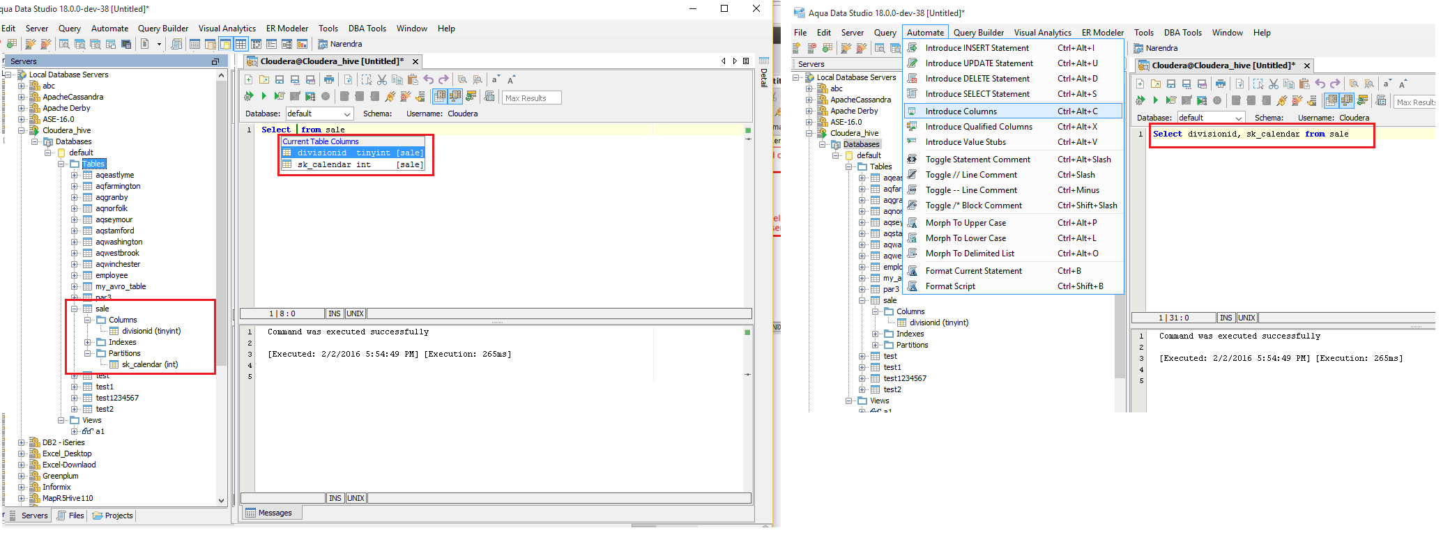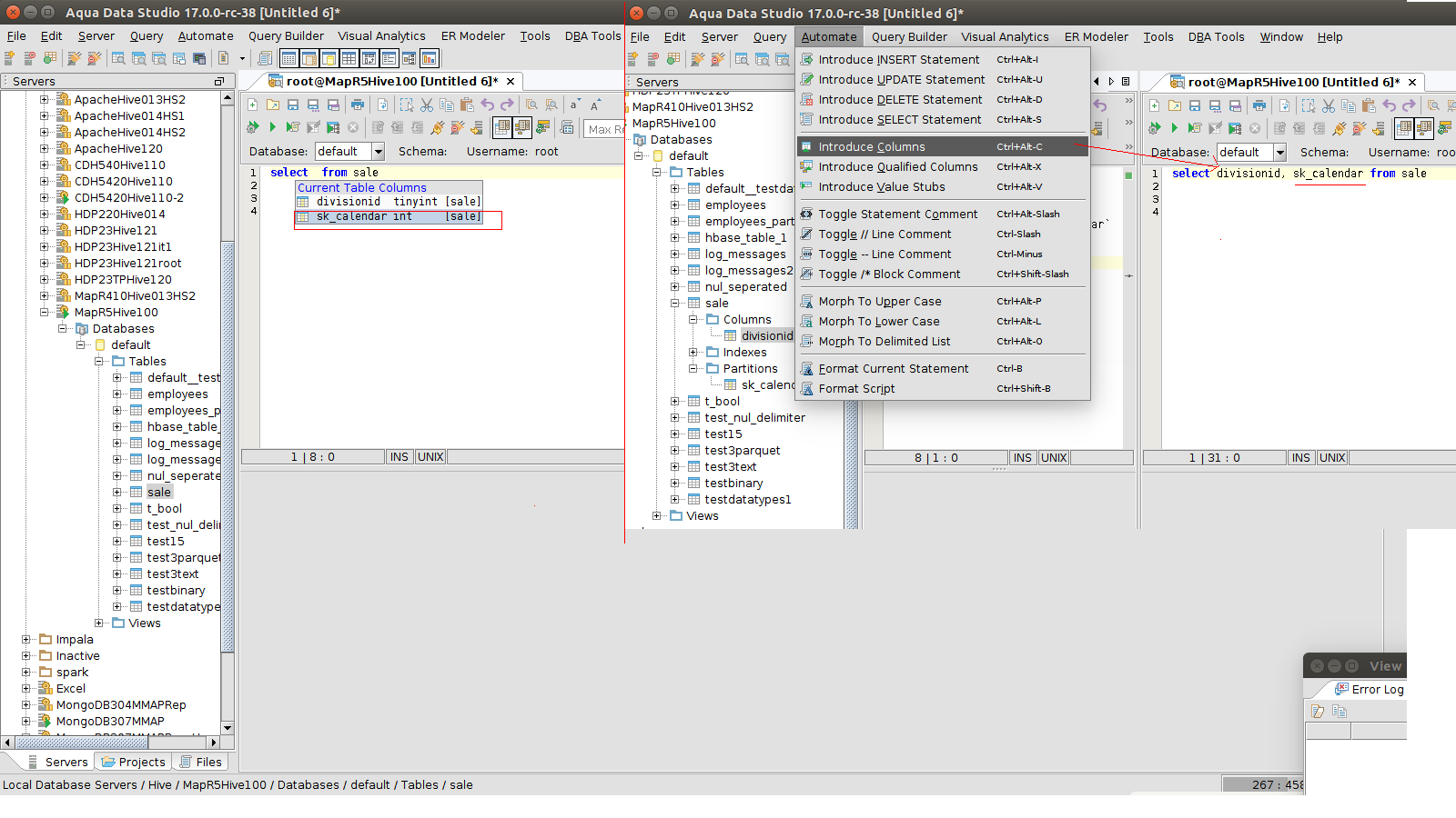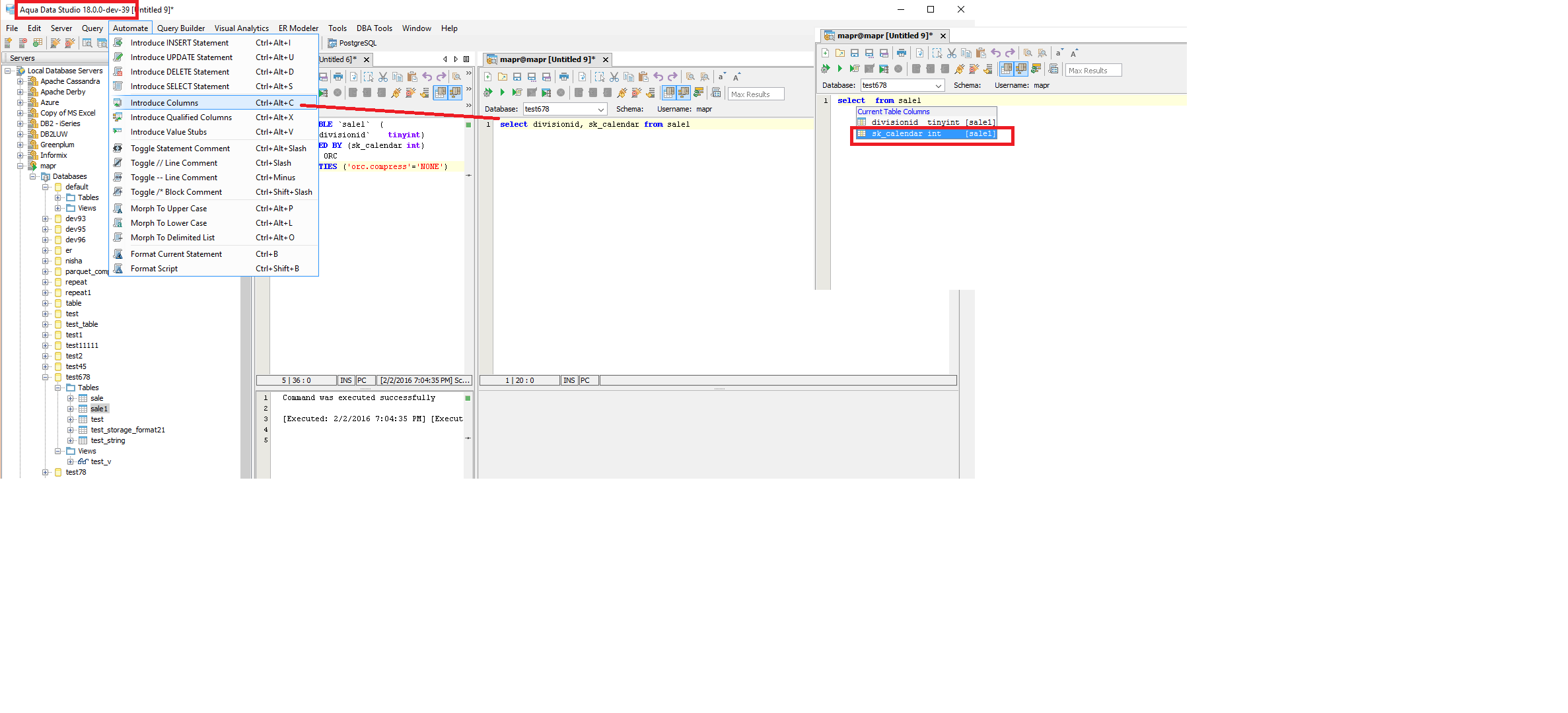 Menu bar - Automate-> Introduce Qualified Columns - partitioned column inserted twice