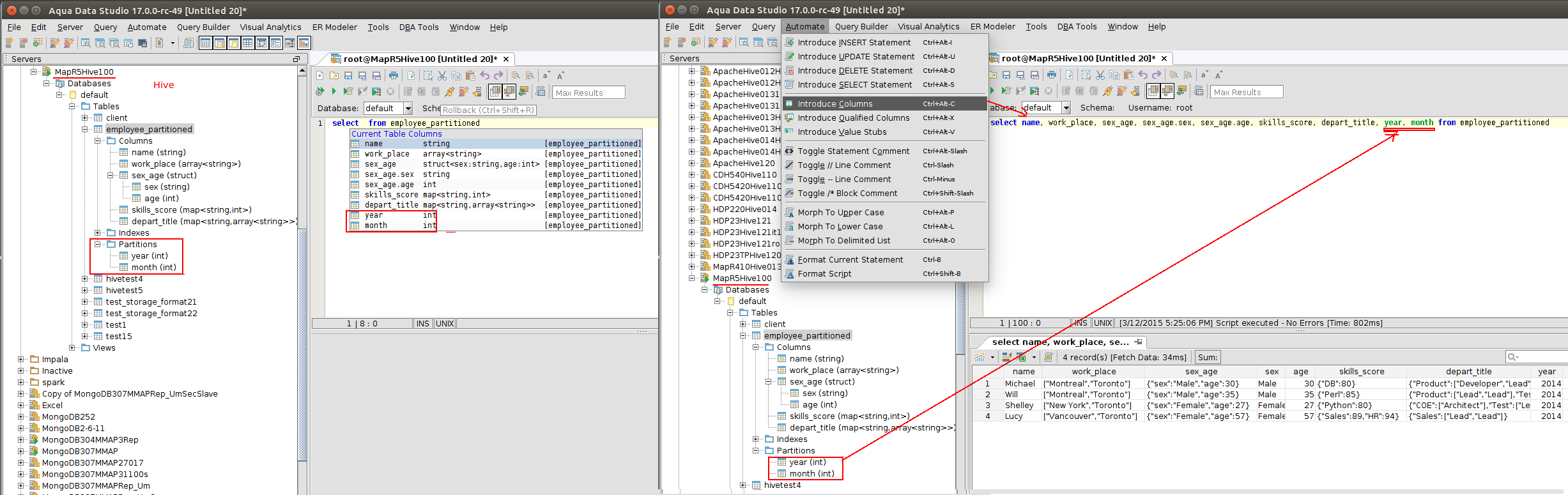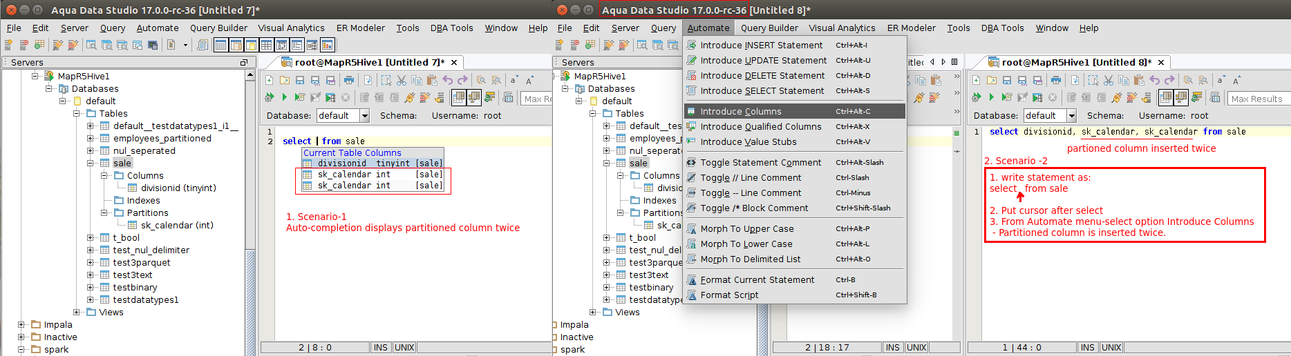 Issue: Hive-> Partitioned columns are displayed twice in auto-completion