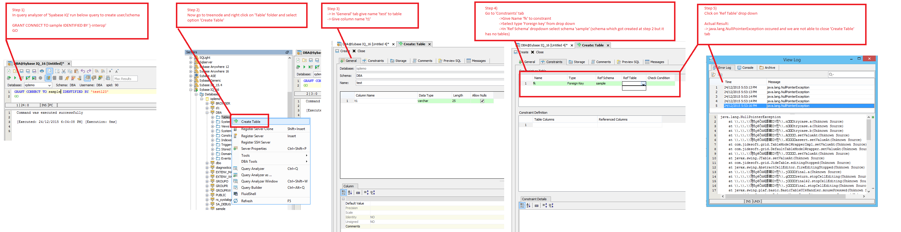 -> java.lang.NullPointerException occured and we are not able to close 'Create Table' tab