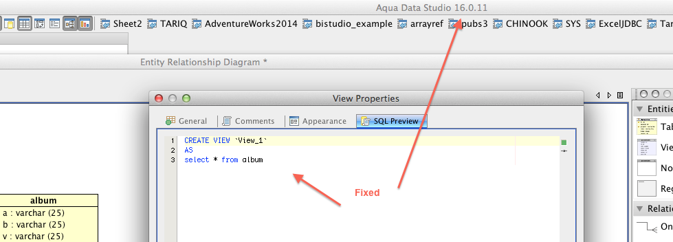 In 16 I broke code generation for view creation when there was no create keyword in the statement. You can verify this by creating a new ERM diagram for mysql and creating a view and entering in the view text "select * from table" and then going to preview view tab. This is broken in 16, 17 and trunc and will now be working as of the version in fixed build field.