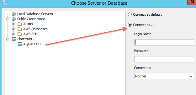 2. Drag and Drop AQUAFOLD database into the shortcut toolbar at the top of the ADS application window. Select "Query Analyzer" shortcut